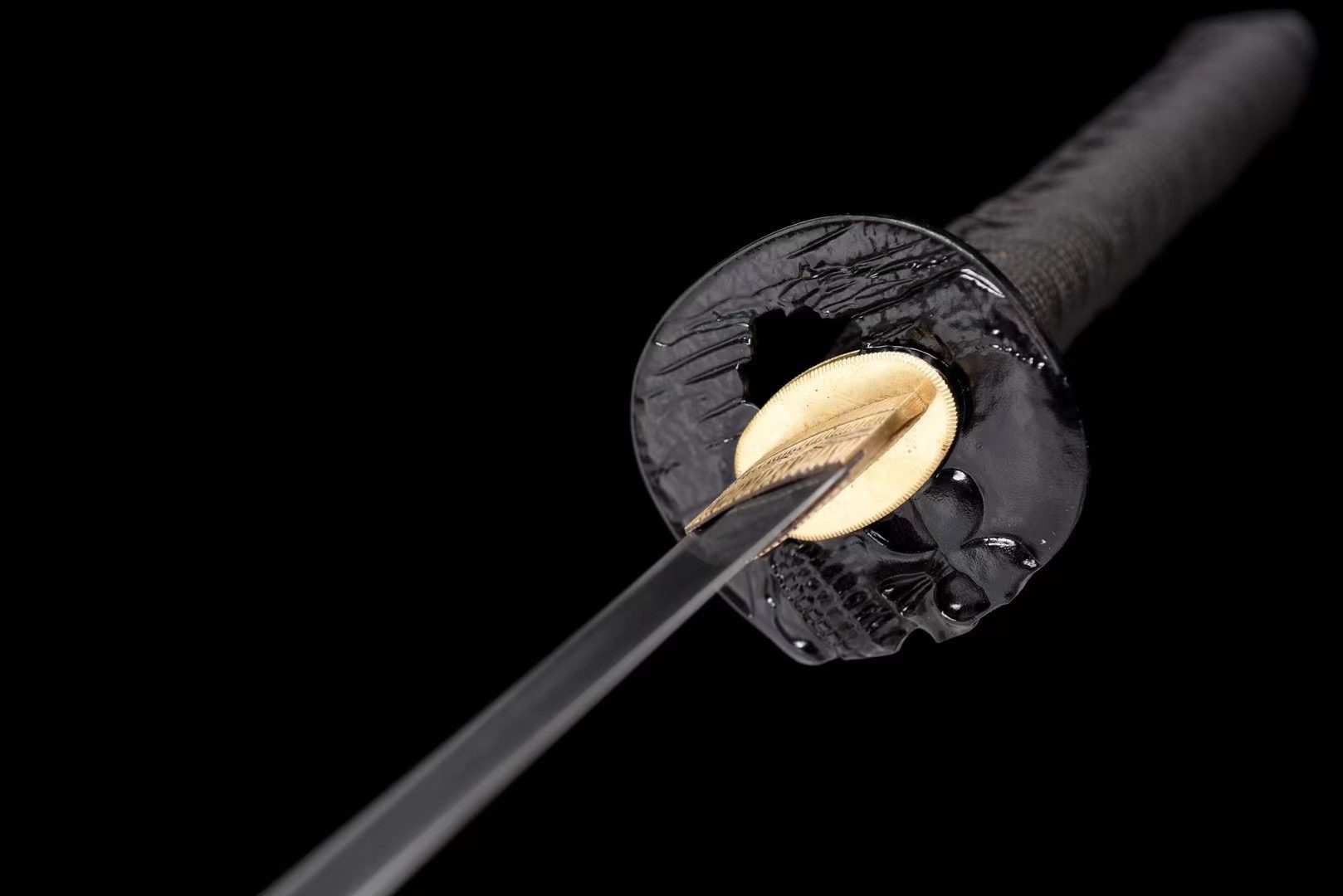 - Guarda (Tsuba 鍔): aleación negra redonda con forma de calavera.