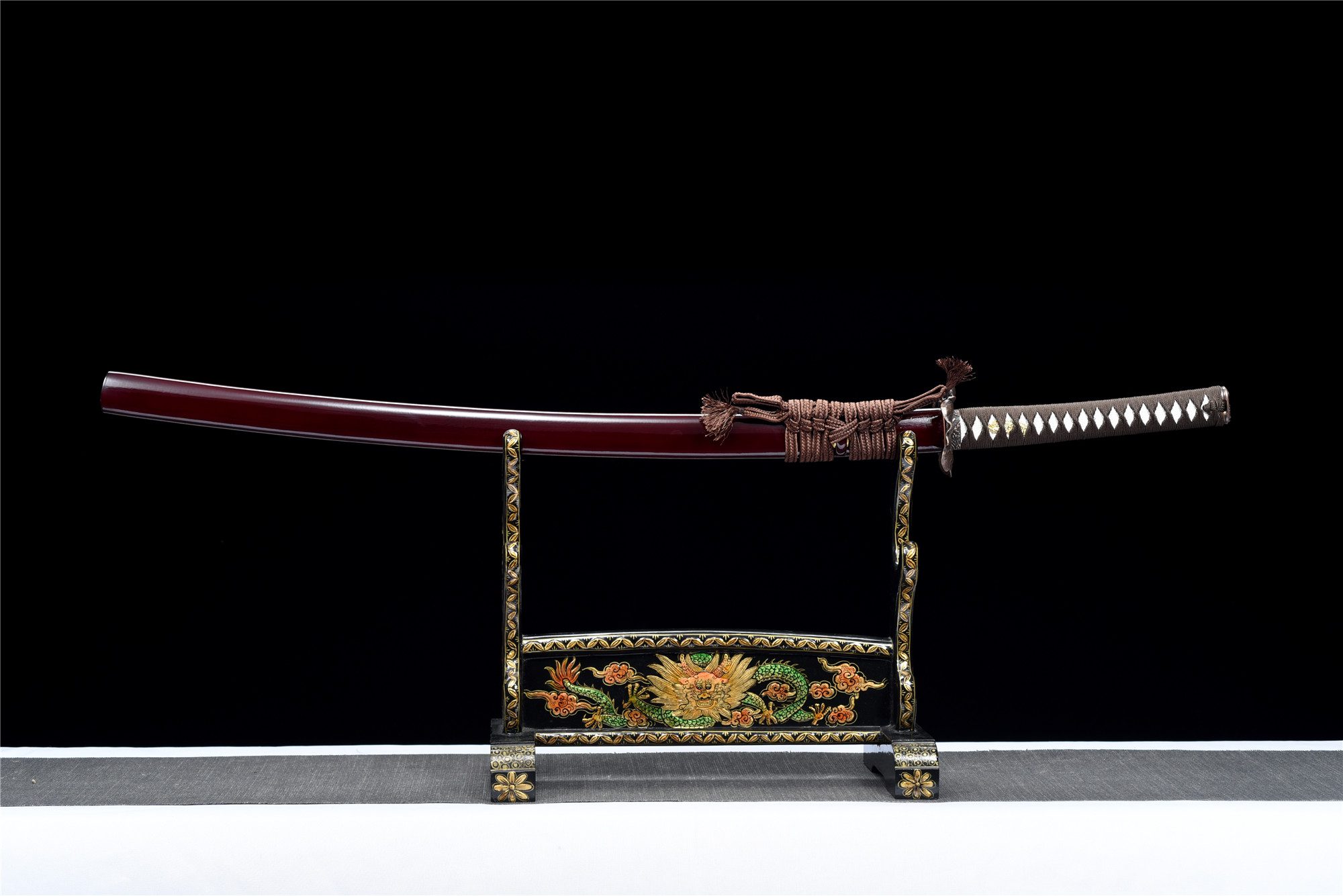 - Vaina (Saya 鞘): Madera lacada en rojo.