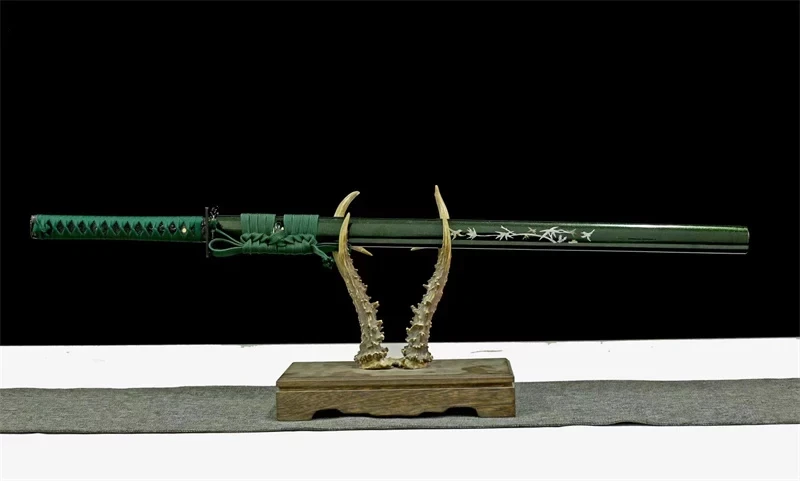 - Hoja: hoja recta chokuto de acero T10, afilada a petición, espiga completa.