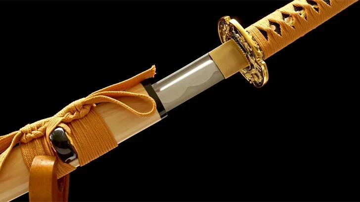 - Tsuka-ITO (柄糸): arena naranja tejida en rombos sobre el empuñadura.