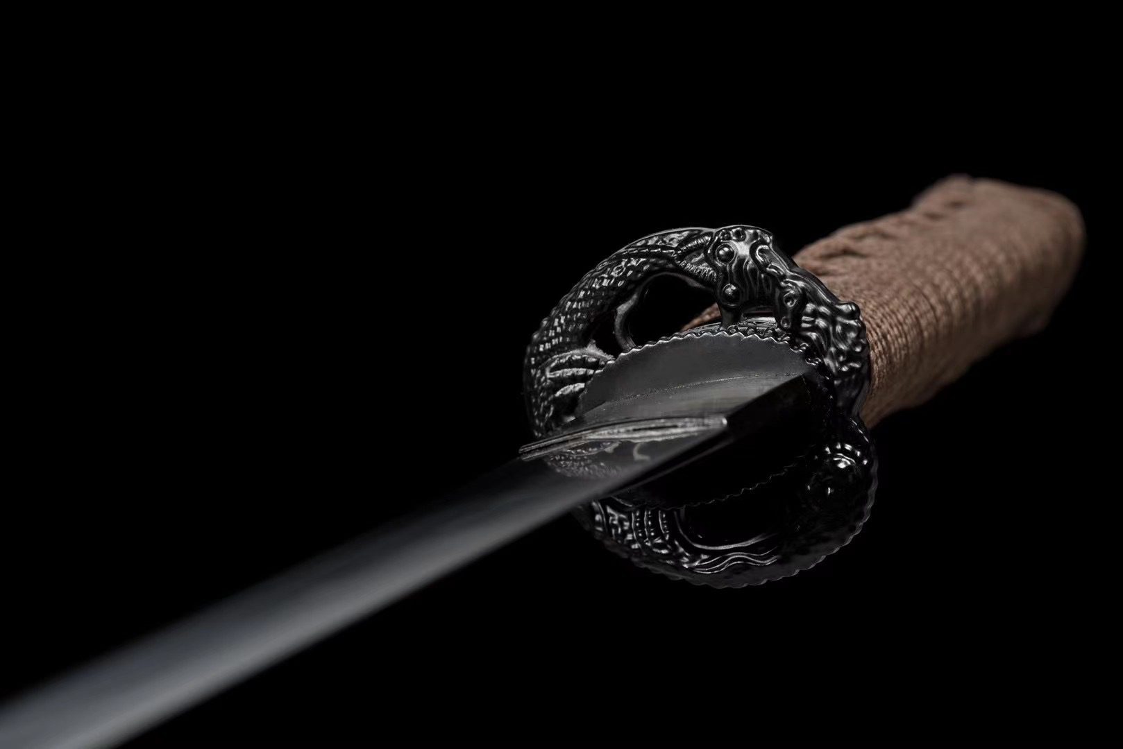 - Guarda (Tsuba 鍔): Dragón enrollado de aleación de hierro negro.